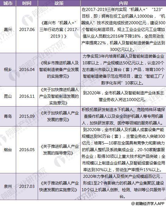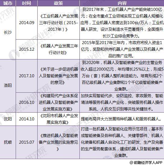 截至2018年主要城市機器人政策匯總及解讀