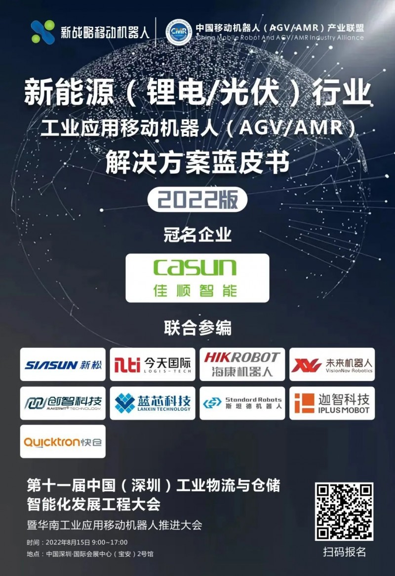 8月15日,由新松參編的《新能源行業(yè)用移動(dòng)機(jī)器人(AGV/AMR)解決方案藍(lán)皮書(2022版)》也將在“中國(guó)(深圳)工業(yè)物流與倉(cāng)儲(chǔ)智能化發(fā)展工程大會(huì)”發(fā)布,敬請(qǐng)期待!
