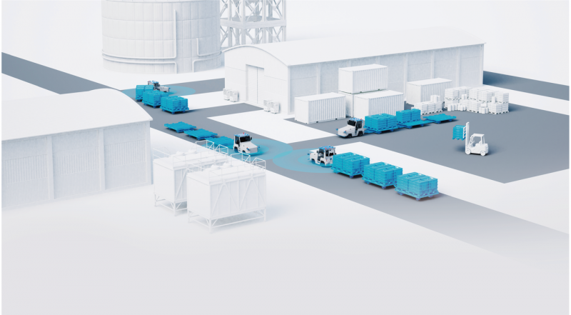 在線邊配送、制品工序間轉(zhuǎn)運環(huán)節(jié),廠區(qū)轉(zhuǎn)運流程復雜多樣,協(xié)作性要求較高,運行路線需要在室內(nèi)外不停切換。馭勢科技無人物流車T05E采用視覺、激光雷達、GPS等多技術融合,實現(xiàn)精確定位和導航,不受生產(chǎn)車間粉塵的影響。緊湊的設計結構、極小的轉(zhuǎn)彎半徑及一流的機動性能保證無人駕駛物流車輛在狹窄的區(qū)域內(nèi)進行牽引作業(yè),滿足室內(nèi)、室外等多場景的物流作業(yè)需求。