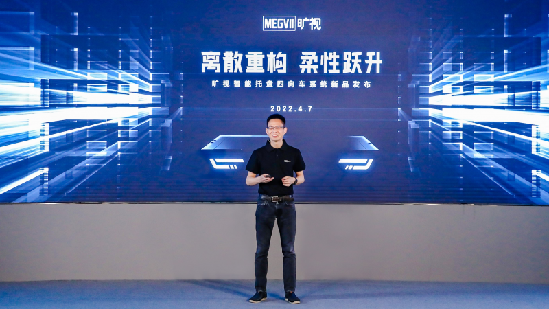 曠視聯(lián)合創(chuàng)始人、物流業(yè)務(wù)事業(yè)部產(chǎn)研負責(zé)人唐文斌發(fā)布曠視智能托盤四向車系統(tǒng)