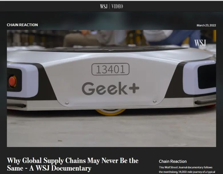 近日,國(guó)際著名商業(yè)財(cái)經(jīng)媒體The Wall Street Journal (華爾街日?qǐng)?bào)) 聚焦全球供應(yīng)鏈的復(fù)雜世界,推出紀(jì)錄片《全球供應(yīng)鏈為何不復(fù)從前》。全球AMR引領(lǐng)者極智嘉(Geek+)驚艷亮相,向全世界展示了AMR機(jī)器人如何在全球供應(yīng)鏈智能化轉(zhuǎn)型升級(jí)中發(fā)揮重要作用,助力企業(yè)提高供應(yīng)鏈反脆弱能力,保持市場(chǎng)核心競(jìng)爭(zhēng)力。