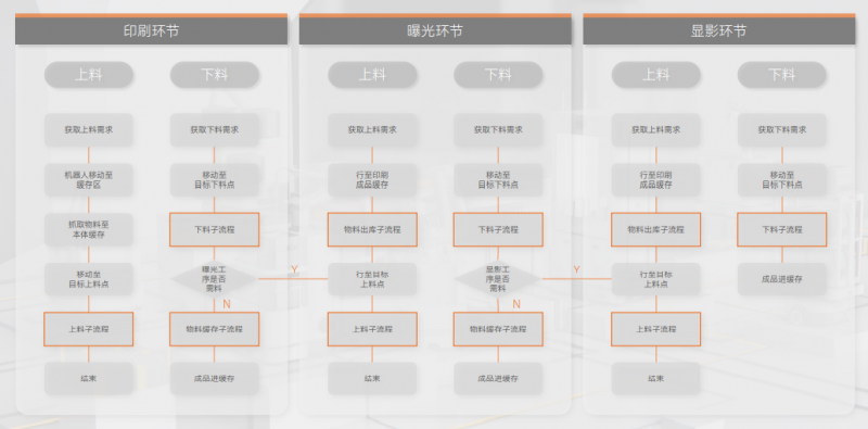 ·完成印刷機(jī)、曝光機(jī)、顯影機(jī)上下料、空籃回收、緩存管理任務(wù)