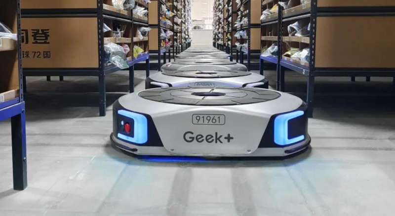 ▲ 極智嘉揀選機器人在波司登倉庫中運行