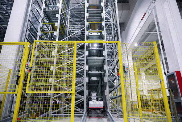 “地狼”是京東物流自主研發的一種典型的搬運式貨到人揀選系統,利用地狼AGV將貨架搬運至固定的工作站以供作業人員揀選。