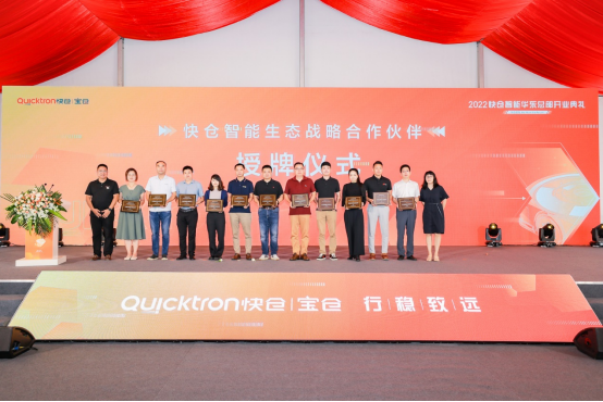圖:快倉智能聯合創始人兼CTO倪菲介紹“鴻鵠”C56機器人行業發展離不開產業鏈上下游的協同,快倉智能也正積極聯合上下游不同領域企業,一起構建移動機器人生態圈。在2022年度戰略生態伙伴授牌儀式上,快倉智能為激光雷達、減速機、驅動器、芯片等多個領域的合作伙伴頒發獎牌,未來,快倉智能將立足于自身產品技術,以開放共贏的態度與生態圈企業聯合,更好的賦能終端應用客戶。