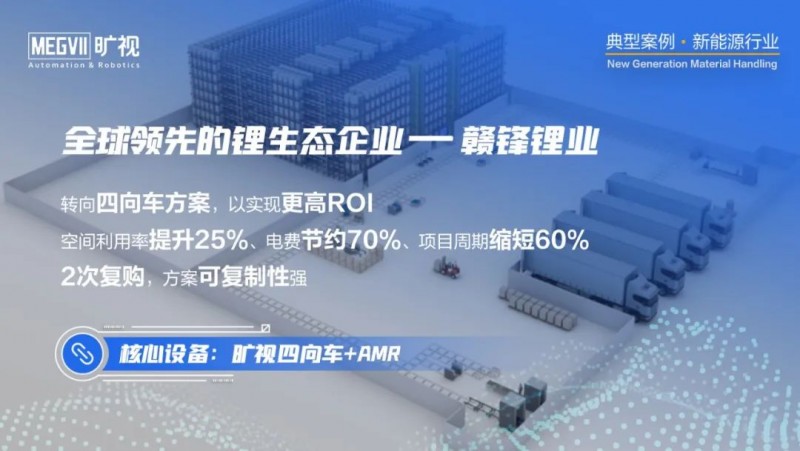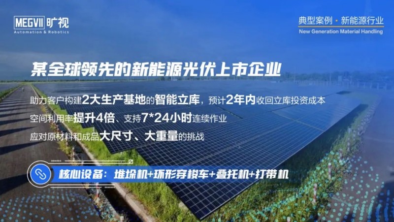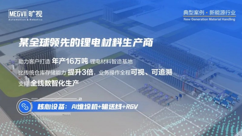 曠視看到,無論是鋰電原材料、動力電池還是光伏等新能源企業的生產設備的自動化改造已經達到較高水平,企業通過工藝管理、工藝改進和精益制造實現了很好的效益提升;目前正在加緊部署物流機器人和智能立庫系統,對物流環節數智化升級,以進一步提升工藝管理和交付能力,實現降本增效。