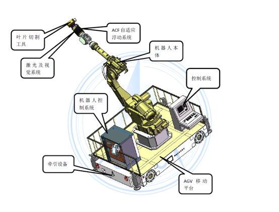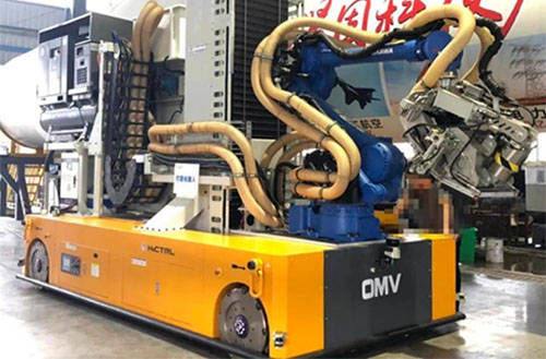 除了物料搬運(yùn)外,在重載移動(dòng)機(jī)器人底盤(pán)上加裝上端機(jī)械臂和其他組件,也可以讓AGV進(jìn)入到生產(chǎn)環(huán)節(jié),相當(dāng)于是給機(jī)械臂加上了“雙腳”。如在風(fēng)力發(fā)電葉片打磨領(lǐng)域,運(yùn)用復(fù)合型AGV便可以實(shí)現(xiàn)葉片的全自動(dòng)化打磨,其中無(wú)需人工操作,且內(nèi)置的力控系統(tǒng)可以保證打磨時(shí)恒力接觸,從而保證了葉片的質(zhì)量;同時(shí),葉片打磨復(fù)合型AGV在打磨頭上裝備紅外線(xiàn)測(cè)距感應(yīng)器,實(shí)時(shí)監(jiān)控,有效確保了打磨精度。風(fēng)電行業(yè)中的復(fù)合型重載AGV,除了可以適應(yīng)葉片打磨的工作,稍加改裝,還可以應(yīng)用于葉片根部雙頭螺栓的安裝與檢測(cè)等安裝工作,進(jìn)一步取代人工,提升企業(yè)know-how。