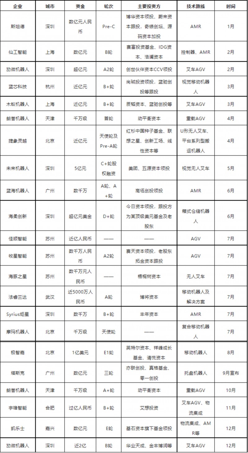 2022年AGV/AMR領域融資22起,累計金額超30億人民幣