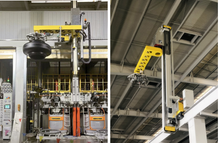 UQI優(yōu)奇EMS自行小車(chē)的軌道布置在高空中,避開(kāi)了擁擠的地面空間,以機(jī)械手從各個(gè)成型機(jī)收取胎胚。其最高運(yùn)行速度高達(dá)200米/分鐘,可充分滿足大面積廠房的快速輸送需求。