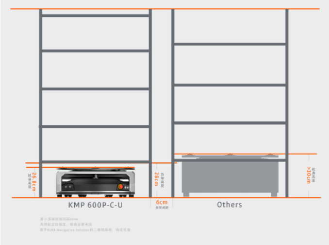 268mm,在同等600kg負(fù)載的移動(dòng)機(jī)器人中車身設(shè)計(jì)更緊湊,車身更靈動(dòng),可輕松進(jìn)出