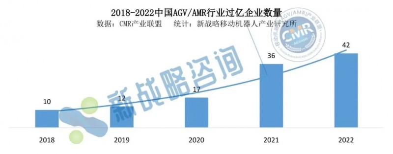 2022年度,中國(guó)市場(chǎng)AGV/AMR企業(yè)銷(xiāo)售額過(guò)億元的企業(yè)約42家,與2021年度的36家相比,新增了6家企業(yè)。