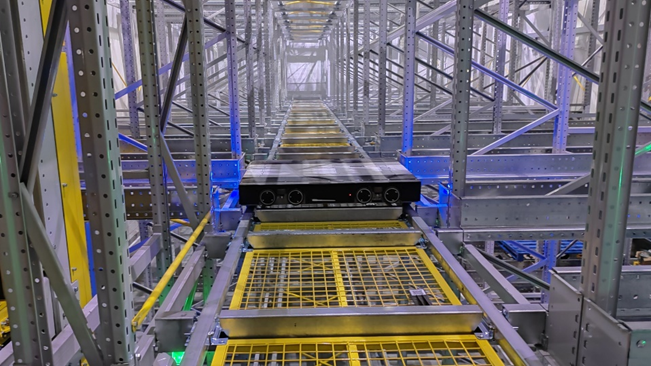 這個(gè)倉(cāng)庫(kù)是一個(gè)5℃冷藏庫(kù),主要存儲(chǔ)國(guó)內(nèi)某關(guān)鍵產(chǎn)業(yè)所需材料,要求恒溫恒濕。倉(cāng)庫(kù)高9米,為實(shí)現(xiàn)最大空間利用率,托盤(pán)四向穿梭車(chē)(簡(jiǎn)稱(chēng)“四向車(chē)”)方案是最優(yōu)選擇。其中,曠視在軟件調(diào)度算法上的優(yōu)勢(shì),以及與松下信息很好的配合度,讓松下工廠(chǎng)最終選中了曠視智能托盤(pán)四向車(chē)系統(tǒng)。