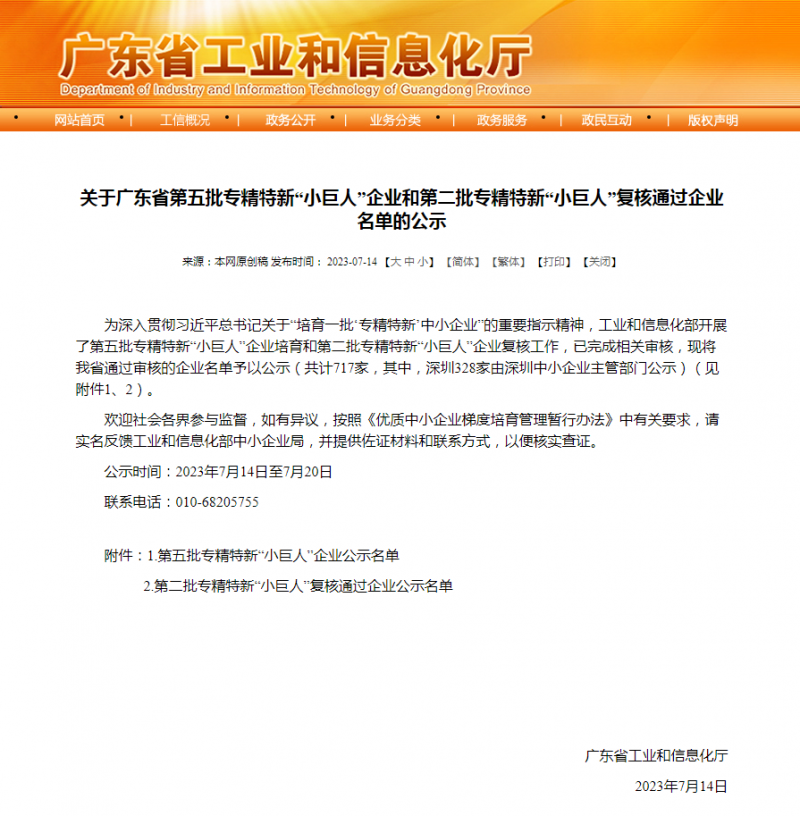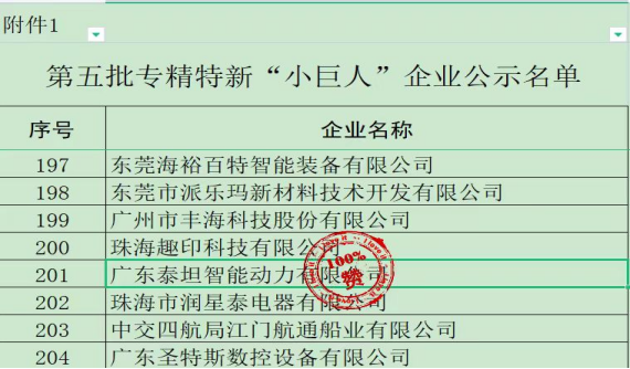 2023年7月14日,廣東省工業(yè)和信息化廳發(fā)布了《關于廣東省第五批專精特新“小巨人”企業(yè)和第二批專精特新“小巨人”復核通過企業(yè)名單的公示》,廣東泰坦智能動力有限公司通過國家級專精特新企業(yè)審核,榮獲“小巨人”稱號。