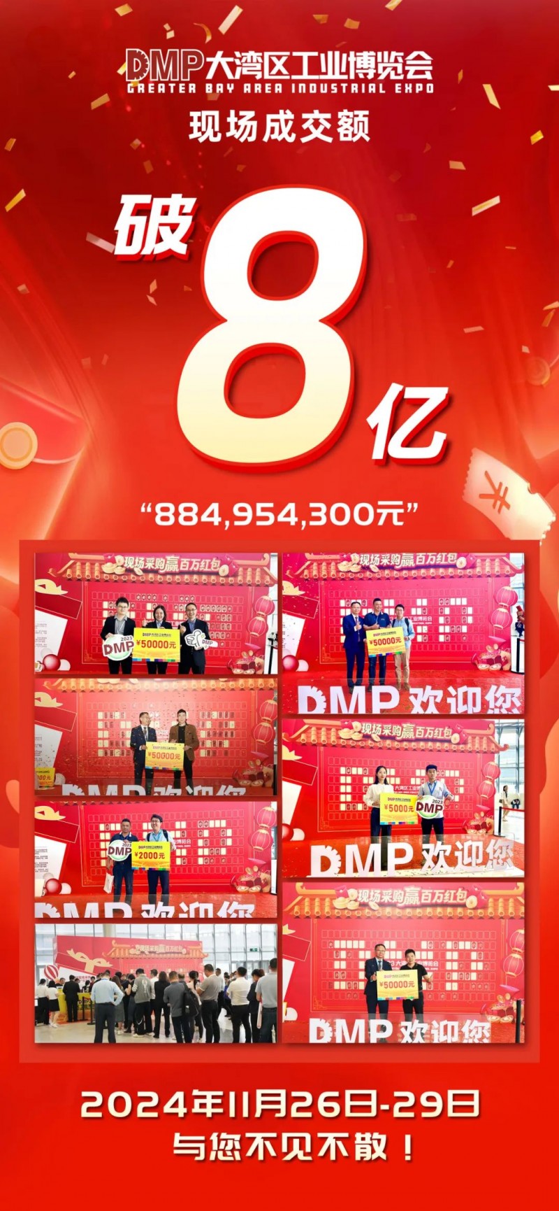 3.據各展商提供采購合同統計,本屆DMP工博會展期內總成交額達884,954,300元(人民幣)。