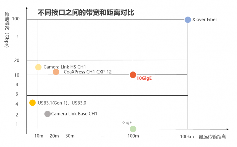 相機采用10GigE萬兆網協議接口,向下兼容千兆網,功耗更低,傳輸距離更長,并且萬兆網整體方案相較于Camera link和CoaXPress方案,復雜度和成本都有所降低。