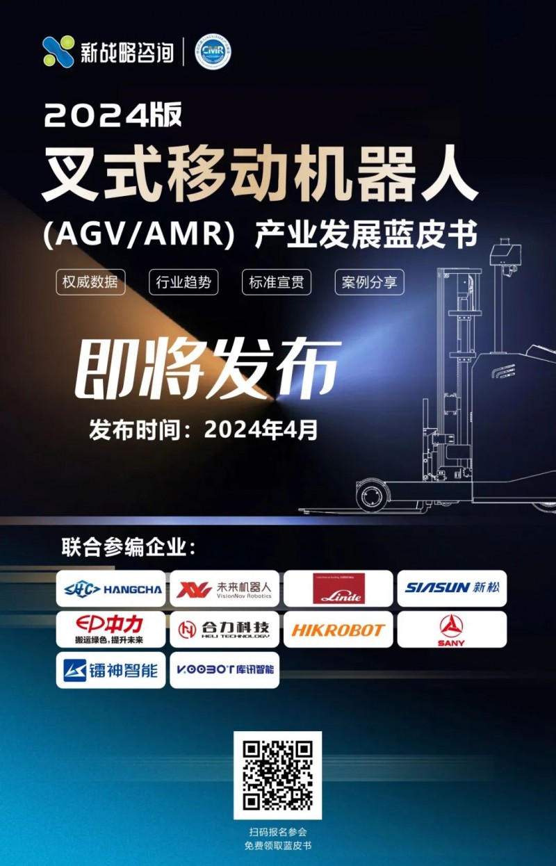 2024年,為了更好地探析當前無人叉車市場最新發展情況及趨勢,推動無人叉車深入應用,彰顯行業品牌力量,由CMR產業聯盟主編,杭叉智能、未來機器人、林德、新松、浙江中力、合力、海康機器人、三一機器人、鐳神智能、哈工庫訊等企業聯合參編的《叉式移動機器人(AGV/AMR)產業發展藍皮書(2024版)》將在4月舉辦“第二屆全球無人叉車峰會”上重磅發布,敬請期待!