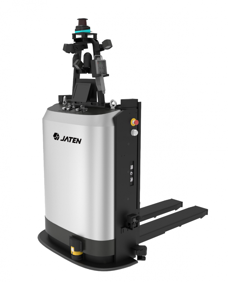 8.5厘米全向無人堆垛叉車,采用自然導航及二維碼二次定位技術,可縱橫向移動及原地旋轉,全向運行;載重600KG;最大舉升高度1200mm;配備嘉騰自主研發的超低、超窄全向模組,體積小巧、運行靈活,支持2M巷道物料搬運;支持棧板位姿、貨物編碼、貨位狀態檢測;使用3D 激光雷達和安全型傳感器全方位避障;配備行車記錄儀和運行輪廓警示燈。
