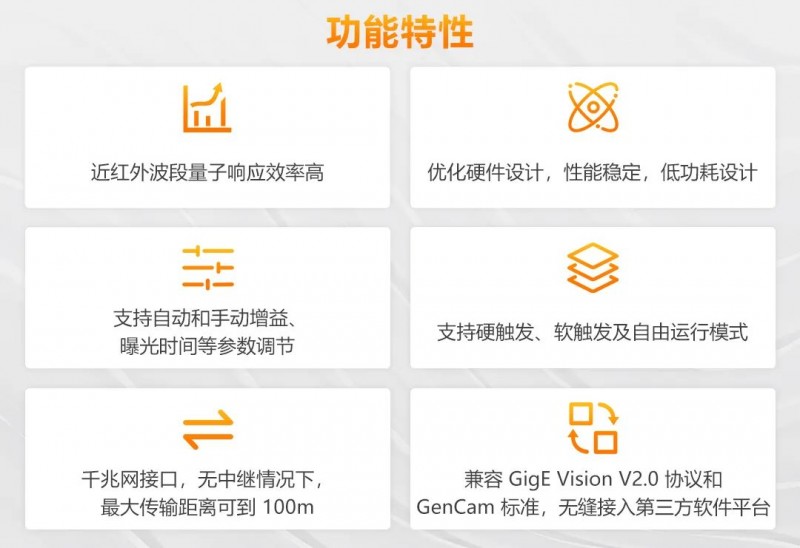 該相機(jī)近紅外波段的響應(yīng)效率顯著提升,能夠在近紅外光環(huán)境下保證成像效果,在常見(jiàn)的近紅外應(yīng)用中,如光伏、激光檢測(cè)、眼科醫(yī)療等應(yīng)用中,能夠確保細(xì)節(jié)的獲取與圖像亮度效果的呈現(xiàn)。