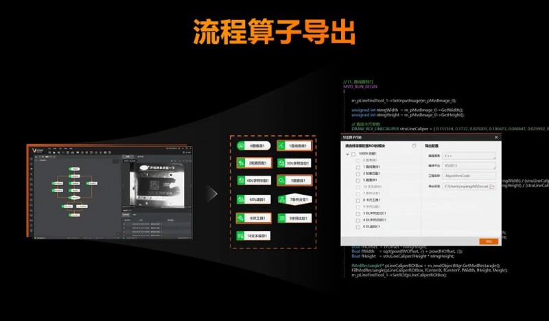 為進一步降低二次開發(fā)難度,VM4.4新增算子導出功能,開發(fā)者可以把搭建好的VM圖形化方案導出成算子接口級的調(diào)用代碼,幫助用戶更快理解VM的算子開發(fā)邏輯,同時減少編碼量。