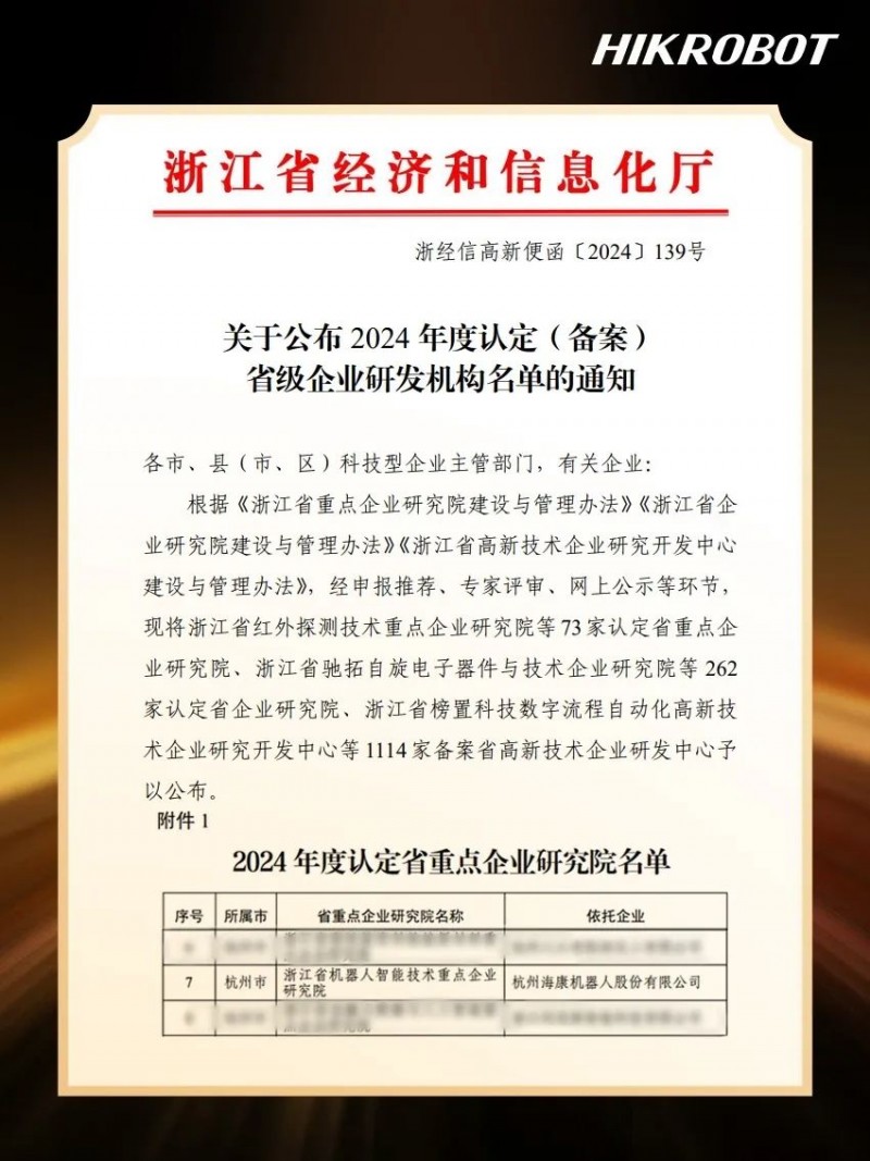 一路高歌,屢創(chuàng)佳績!近年來,??禉C器人在科技創(chuàng)新領(lǐng)域的卓越表現(xiàn)得到廣泛認(rèn)可,2024年榮膺“國家重點軟件企業(yè)”、“全省工業(yè)大數(shù)據(jù)與機器人智能系統(tǒng)重點實驗室”、“2024浙江省科學(xué)技術(shù)進步三等獎”等眾多榮譽獎項。
