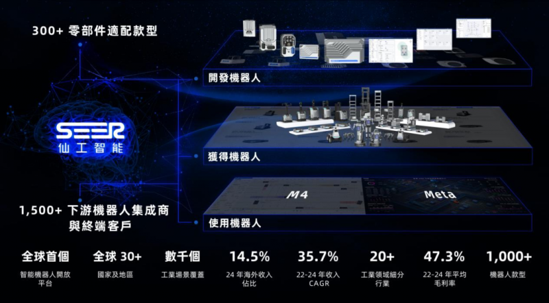 根據灼識咨詢的資料,仙工智能在2023-2024連續兩年的全球機器人控制器銷量排名第一,并以此為基礎,構建了全球首家規模化的智能機器人開放平臺。
