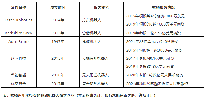 今年5月,軟銀領(lǐng)投了優(yōu)艾智合新一輪近億人民幣融資,但這也只是軟銀在移動(dòng)機(jī)器人領(lǐng)域近40億美元投資的冰山一角。近年來,從倉儲(chǔ)物流到送餐服務(wù),軟銀在移動(dòng)機(jī)器人行業(yè)頻頻出手。