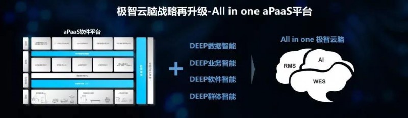 l Deep軟件智能:極智嘉aPaaS 軟件平臺(application platform as a serice)再度升級, 滿足“多元、異構、大規模”的機器人群體場景,而且繼續保持低/零代碼、all in one的特點,實現快速開發和迭代,敏捷應對變化。