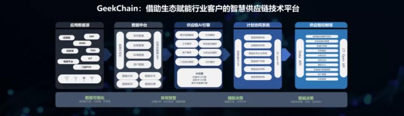 極智鏈(GeekChain):極智嘉極智鏈 (GeekChain) 將作為賦能行業客戶的智慧供應鏈技術平臺,充分發揮數據中臺和AI引擎的力量,綜合協同智能排產、智能選址、智能補貨分倉、運輸規劃、智能預測等系統,最終成為供應鏈控制塔,為企業提供智能決策。