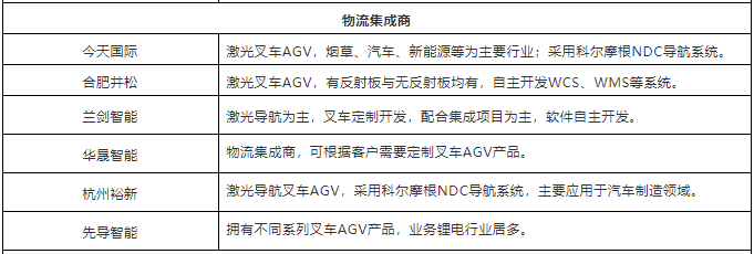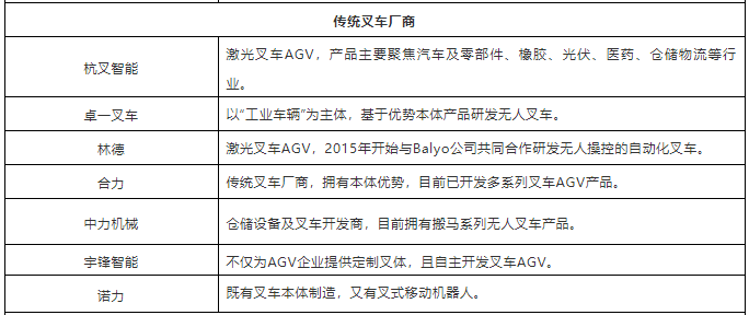 表:中國市場40+叉車AGV企業(yè)(排名不分先后,企業(yè)分類以其主營業(yè)務(wù)為依據(jù))