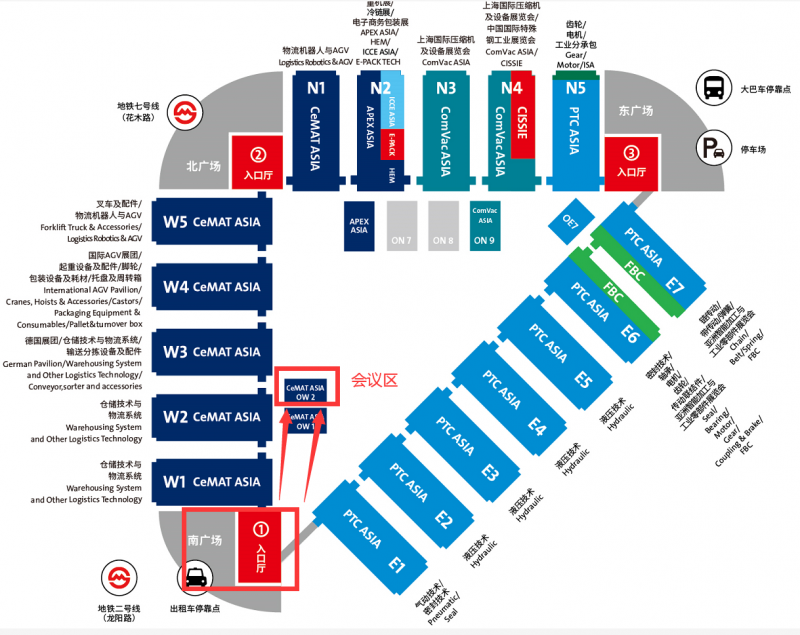 會議地點:上海新國際博覽中心·內(nèi)廣場OW2館(南廣場1號入口廳進(jìn)比較方便,見下圖)