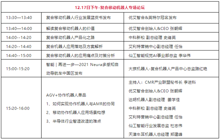12月15-17日,由中國移動機器人(AGV/AMR)產(chǎn)業(yè)聯(lián)盟主辦的“2021 中國移動機器人(AGV/AMR)行業(yè)發(fā)展年會”將在北京舉行,敬請期待!CMR產(chǎn)業(yè)聯(lián)盟年會,是一年中最為重要的行業(yè)會議,會聊宏觀經(jīng)濟的走勢,做到自上而下的研判;會討論投資策略,以及風險規(guī)避;會聊產(chǎn)業(yè)發(fā)生的趨勢變化、探討行業(yè)問題等。年會是打開視野、提升認知、抓基調(diào)、定主線的重要時刻。期待每一位與會嘉賓的真知灼見。