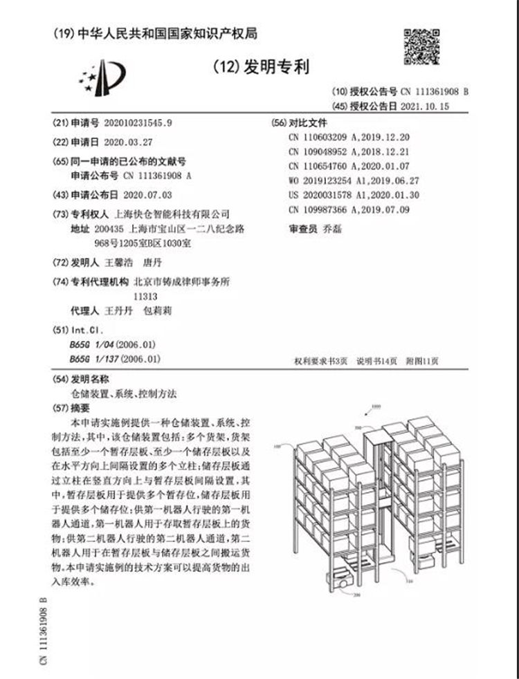 快倉Quick Pick方案以其先進性和創新性獲得了行業內外的一直認可,20211015日快倉QuickPick發明專利獲得正式授權!