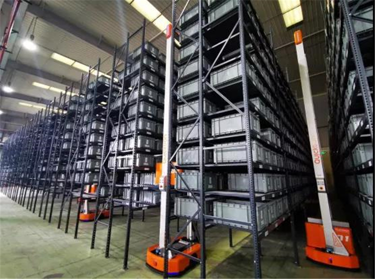2021年,快倉智能與上海虹迪物流科技有限公司聯合打造了虹迪智慧物流Quick Pick項目,智能倉的整體面積逾1000㎡,采用11層高密度AGV貨架,貨位一層改造為一半緩存位一半通道,這樣空載小車可從緩存位下方穿行,帶載小車可從通道穿行。