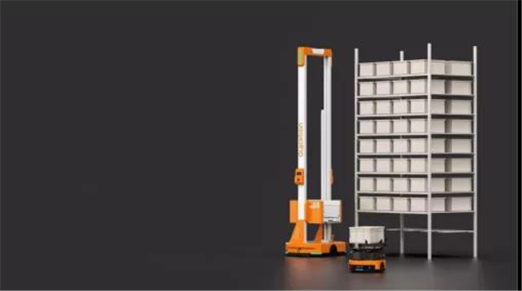 “大工”鴻鵠料箱機器人主要干“蓋樓”的活,系統下達命令后,鴻鵠負責垂直方向的取貨,然后放在一層的緩存架;接下來,由體積小巧靈活的“小工”青鸞干“搬磚”的活,負責水平方向上遠距離的料箱搬運,背負料箱送至工作站。人只需要從料箱內揀貨即可。