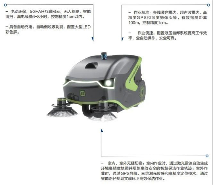 山東魯環(huán)機械設(shè)備有限公司所發(fā)布的5G無人駕駛新能源掃地車,基于5G+無人環(huán)衛(wèi)AI大腦,無人駕駛智能清掃車基于自動駕駛控制器,能實現(xiàn)智能化和無人化作業(yè)。當