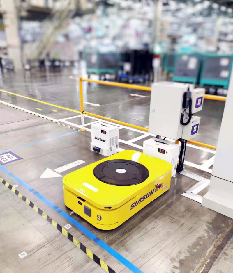 2019年新松機器人為國內某知名車企在總裝車間的儀表線、電池線、門段揀選線等產線提供數十臺物流配送AGV。項目在實施過程中,原定選用的是激光SLAM導航,由于部分生產線邊特征點不明顯,環境特征變化太多,導致SLAM導航精度不高,定位不準,影響了使用效率。經過分析后,新松輔以紋理導航解決了因局部區域特征變化較大而產生的問題。在特殊路段,通過對現場地面紋理的拍攝,與AGV本體已有紋理模型構圖進行比對,從而確定精確位置,提高了現場的導航精度和定位精度,滿足了客戶的使用效率要求。